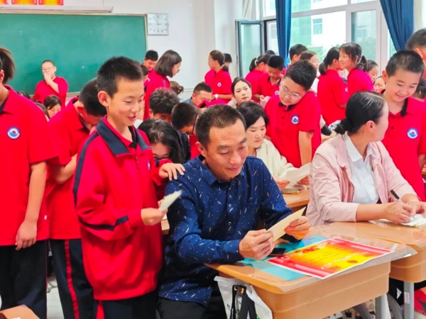 为增强家校共育的互动性与感染力,孙旭红班主任特别设置学生发言与“给家长的一封信”环节。学生代表走上讲台,分享入学一个月来的成长与感悟,表达对父母和老师的感恩。随后,家长们收到孩子亲手书写的信件。纸短情长,不少家长在阅读过程中感动落泪,纷纷表示“第一次这么真切地听到孩子的心里话”。