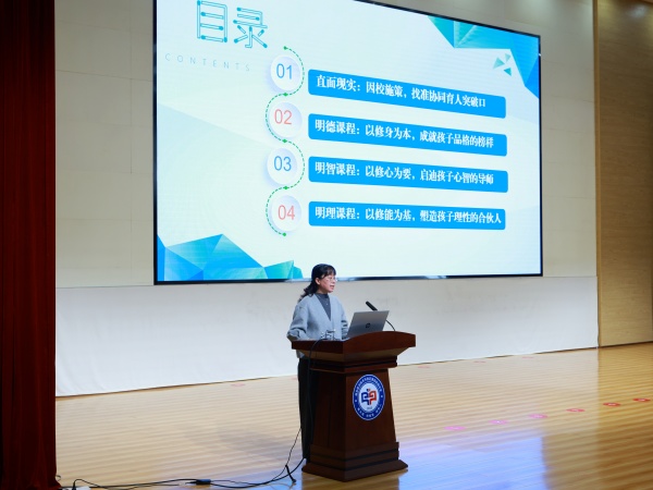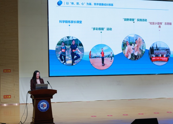会议在庄严而热烈的氛围中拉开帷幕。开发区四中党支部副书记孙志远首先作了题为《齐家树人:建构生命成长共同体》的省级优秀家长学校经验展示,系统阐述了学校“齐家树人”家庭教育工作体系下的家校情感联结与目标共识的实践路径,为全市树立了高质量家校共育的鲜活样板。