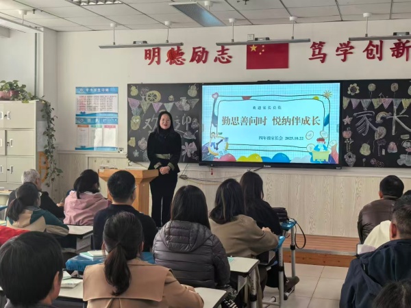 四年级紧扣“勤思善问促成长”主题,侧重培养学生的探究精神与思维能力。课堂上,教师们通过问题链引导、小组合作探究等教学方式,激发学生的思考热情,家长们看到孩子们主动提出疑问、积极参与讨论、大胆展示成果,深感欣慰。PPT展示环节,各班通过丰富的图片、视频资料,全面呈现了学生在课堂学习、社团活动、社会实践中的成长足迹;感恩书信展区,孩子们稚嫩的文字里满含对父母的理解与爱意,让不少家长热泪盈眶。教师与家长围绕“如何激发孩子的求知欲”“怎样培养批判性思维”等话题深入沟通,为孩子的思维发展保驾护航。