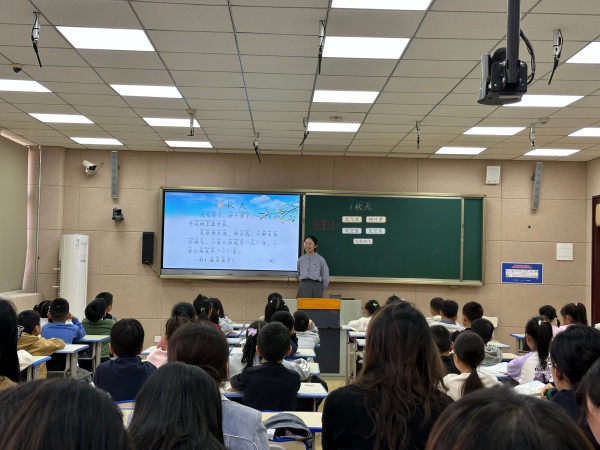 一年级五个班级依次走进录播教室,邀请家长走进课堂、走近孩子,感受他们的进步与惊喜。语文课上,老师声情并茂,引领孩子们走进汉字的神奇王国。“小豆包”们坐姿端正、眼神闪亮,小手高高举起,回答问题时声音清脆又自信。家长们则化身“超级粉丝”,时而为孩子的精彩回答会心一笑,时而用手机记录下这珍贵的瞬间。这一刻,录播教室里回荡的不仅是知识的声音,更是童心与爱心碰撞出的悦耳回响。