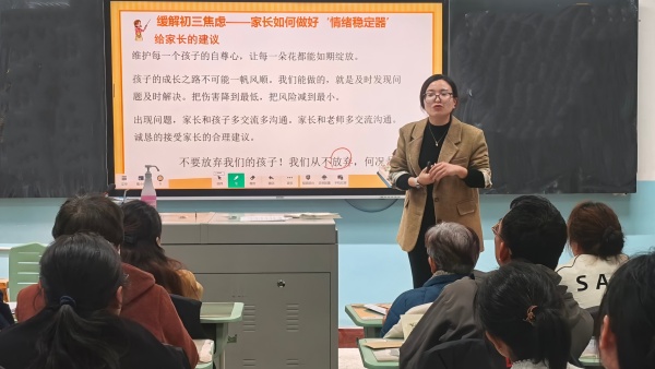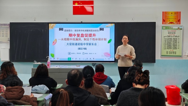 初三年级以“聚焦·突破”为主题,全力为中考做好铺垫。会议内容涵盖“期中复盘”“目标感建立”及“焦虑情绪的缓解”等,引导家长成为孩子的“情绪稳定器”和“目标助推器”。初四年级则以“衔接·提效”为主题,聚焦中考冲刺,从“一轮复习策略”“学习方法优化”到“周末规划”,帮助孩子们高效开启冲刺新征程,主动迎战中考。