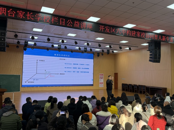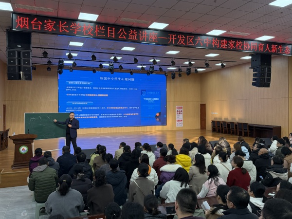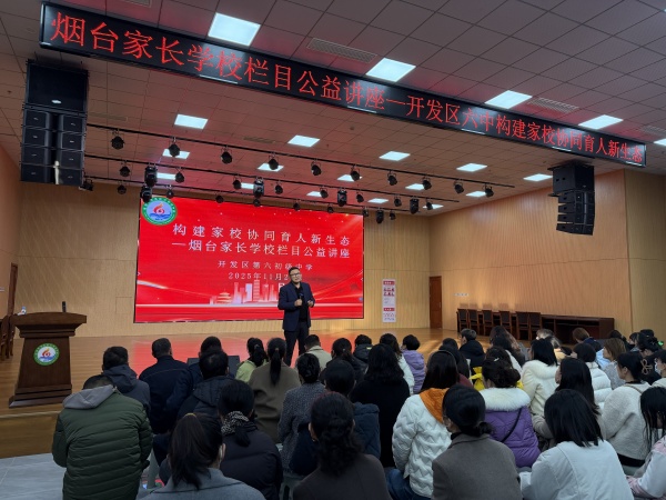 胶东在线11月27日讯(通讯员 阚丽蓉 实习编辑 单煜媛)为搭建科学育儿沟通桥梁,破解家校协同育人难题,近日,烟台开发区第六初级中学特邀郑喜峰教授莅临现场,以《构建协同育人机制,共绘孩子成长未来》为主题,为家长们带来一场兼具理论深度与实践价值的育儿盛宴,助力打造家校社协同育人新格局。