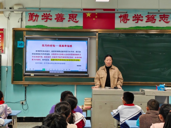 胶东在线11月28日讯(通讯员 孙忠花 实习编辑 单煜媛)近日,牟平区武宁街道五里头学区小学开展了以“压力,放马过来吧”为主题的心理健康宣讲活动,旨在让学生们在轻松互动中解锁压力调节的“小妙招”,助力学子轻松迎接成长。