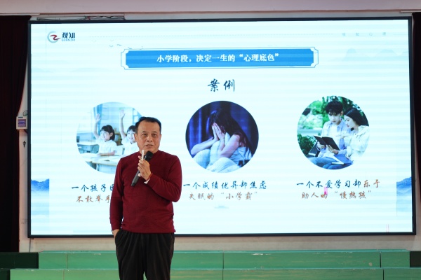 本次讲座特邀国内顶尖实战派心理咨询专家张久祥教授主讲。他是中央电视台《心理访谈》节目常驻心理专家、观知心理体系创始人,在心理干预、亲子教育领域有着三十五年实战经验。张教授以“小学阶段决定一生的‘心理底色’”为核心展开分享,针对6至12岁孩子的成长关键期,用盖楼作生动隐喻:这一阶段如同建筑施工的奠基阶段,必须以高质量的原材料筑牢根基,而这些原材料正是孩子成长的五大核心要素——“钢筋”象征意志力,是支撑成长的核心骨架;“水泥、沙子”代表人际关系、社会参与,如同建材间的强力粘合剂;“砖”代表知识储备,是构建大厦的基础单元;“水”特指家长给予孩子的爱,如果没有情感和爱,其他四种材料则无法建成孩子整个人格,即使强行堆砌也将不堪一击。
