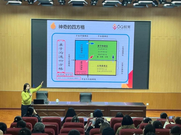 讲座伊始,张欣老师便直击当下家长育儿的核心痛点——不少家长在教育子女时常常感到孤立无援、困惑迷茫。为让问题更直观呈现,张老师现场展示“神奇的亲子沟通四方格”,将亲子间的沟通误区与潜在矛盾清晰剖析,引发了在场家长的强烈共鸣。