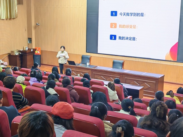 胶东在线12月4日讯(通讯员 黎霞 实习编辑 单煜媛)12月2日,烟台经济技术开发区第七小学在阶梯教室成功举办“让家成为孩子的能量加油站”家庭教育公益讲座。活动特邀资深家庭教育专家张欣老师主讲,全体学生家长踊跃参与,共赴一场为爱赋能、为成长助力的教育之约。