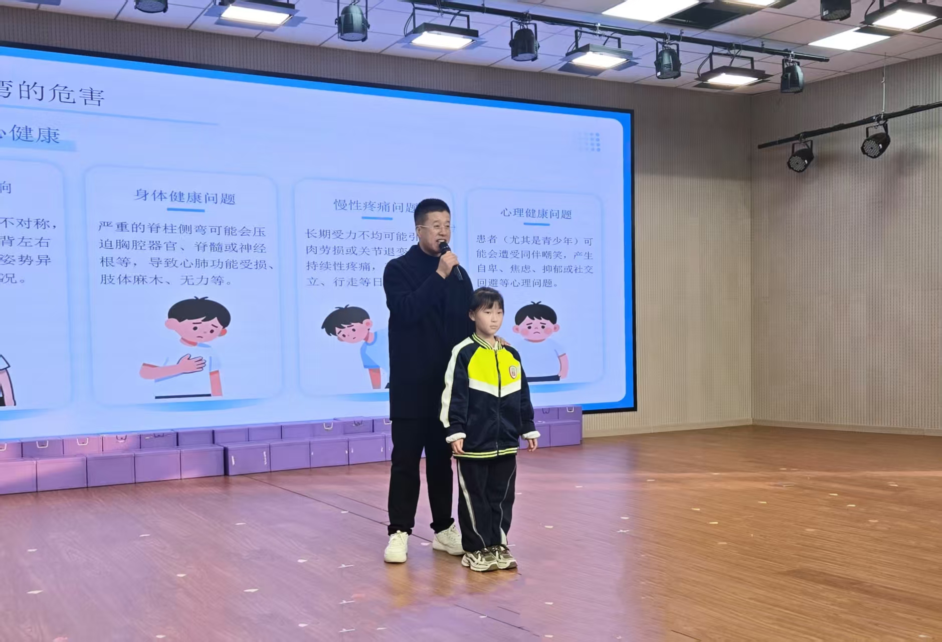 三年二班的张睿泽爸爸,则面向2、3年级学生,围绕“脊柱侧弯预防与身体健康保护”展开生动讲解。他通过鲜活的案例和直观的演示,教授孩子们正确的坐姿、站姿,普及脊柱健康知识,助力孩子们养成良好的生活习惯。课堂上,孩子们积极互动、踊跃提问,沉浸式的学习体验让大家受益匪浅。