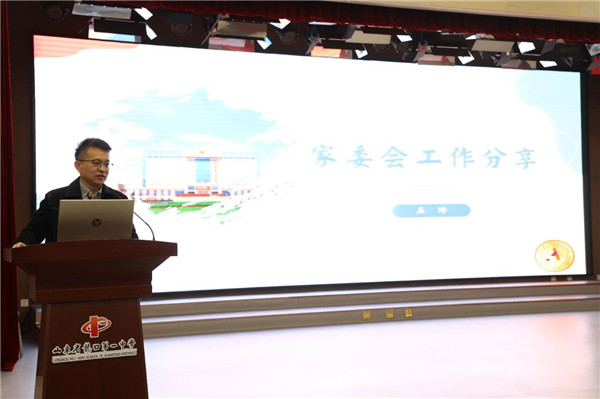 第十六届校家委会主任石坤回顾家委会发展历程,分享近年来实践成果与深度思考:本届家委会精心定制专属徽章、文创书签等标识物品,让工作更具辨识度与归属感,凝聚团队向心力;明确家委会需精准定位为学校、教师与学生间的枢纽桥梁,既要积极传递学校先进育人理念,也要如实反映家长关切心声,推动家校双方真诚沟通、互信互助,夯实协同育人基础;强调家委会成员应持续提升自身素养,以理性视角、建设性姿态参与学校发展,主动成为学校教育发展的宣传员、调解员、监督员,不断丰富家校共育形式、深化家校共育内涵。