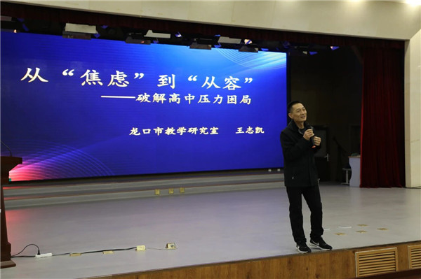 龙口市教育体育局家教办主任王志凯,以“从‘焦虑’到‘从容’——破解高中压力困局”为主题,分享家庭教育智慧。他通过现场互动、情景模拟,辅以权威数据与典型案例,深刻指出亲子关系是孩子人生幸福的核心基石,呼吁家长主动支持孩子建立健康社交、多陪伴孩子走进自然,在轻松氛围中重建亲子情感连接。同时精准点出,家长过度期待、单纯“讲道理”等不当教育方式,不仅会加重孩子心理压力,甚至可能影响其学习效率。