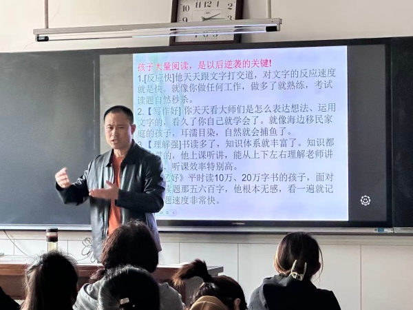 主任刘保华从书香中走来,谈阅读如何让生命丰盈。他说,一本好书,是一扇望向世界的窗,也是一面照见自我的镜。当家中有一隅书香,有亲子共读的时光,思想的种子便悄然萌芽。这不仅是学业之需,更是生命获得深度与广度的源泉。