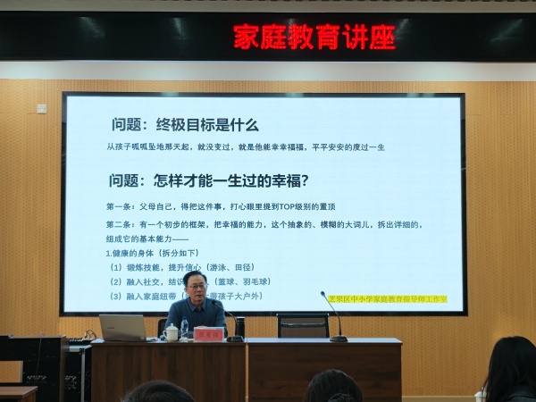 活动开始,张主任系统梳理了家庭教育内在逻辑,并传递出“办法总比问题多”的积极育人信念,明确“耐心陪伴”是家庭教育根基,“科学育儿”是提质关键,“家校社协同育人”是破局的核心路径。他从家庭教育的核心目标切入,强调教育举措需以孩子拥有幸福平安人生为落脚点,提出家校需携手为孩子搭建四大底层幸福能力框架,即筑牢健康根基、搭建稳定的社会支持系统、培养谋生能力、塑造自洽的内心状态。