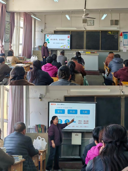 家长会上,学校心理教师崔老师在校广播里首先致辞,她强调“高考备考不是学生的孤军奋战,也不是学校的单打独斗,而是家校双方携手同行的系统工程”,并从学情分析、备考计划、心理疏导三个维度,向家长介绍了高三学生的心理特点。随后,高三级部柏建波主任结合历次模拟考试数据,分析了学生当前的学习状态,建议家长“多倾听、少施压,多鼓励、少指责”,帮助孩子调整心态、高效备考。