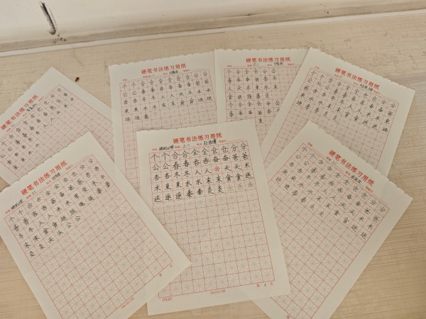 理论讲解与示范结束后,便进入了激动人心的硬笔书法实践环节。孩子们早已按捺不住心中的期待,纷纷铺展练习纸,手握钢笔认真书写。周老师穿梭在课桌之间,逐一对孩子们进行个性化指导,耐心点拨书写细节,助力大家攻克书写难关。