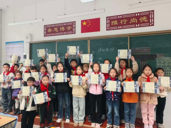 活动尾声,班级开展了书写成果展示环节。周老师对孩子们的作品逐一点评,为听讲专注、书写工整优美的同学颁发了荣誉奖状。一张张奖状承载着认可与鼓励,一个个工整的汉字凝聚着努力与收获。孩子们手捧奖状,脸上洋溢着自豪的笑容,在笔墨书香中收获了知识、技能与满满的成就感。