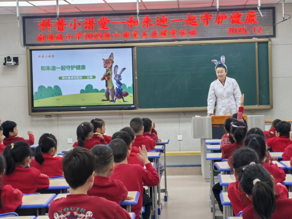 胶东在线12月26日讯(通讯员 柳洪涛 实习编辑 单煜媛)近日,南通路小学2025级六班成功开展了家长进课堂系列主题活动。本次活动特邀班级学生家长国静和妈妈,为学生们带来了一堂别开生面的健康科普课——《朱迪警官的病毒大作战》。