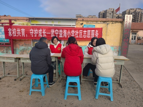 胶东在线12月26日讯(通讯员 宋桂芬 实习编辑 单煜媛)近日,牟平区武宁街道益海小学组织骨干班主任及学校相关负责人组成教师志愿者队伍,走进社区,在西武宁村委门口开展“家校共育,守护成长”家庭教育志愿服务活动,把专业的教育指导送到家长身边。
