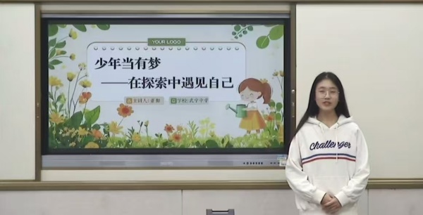 活动中,学校心理辅导教师董阳老师为同学们带来了“少年当有梦——在探索中遇见自己”心理健康教育微课。董老师通过探讨青年应该是什么样子、我的理想“自我”、在迷茫中闪光、挖掘我的“宝藏”与“心愿”四个环节,穿插视频讲解、同学来信、学生采访等活动形式,充分利用多媒体和AI技术,引导少年在对梦想的畅想中,直面内心的热爱与困惑,在探索的过程中认知自我、接纳自我、成就自我。这种以情感共鸣为核心的教育方式,让心理健康教育不再是冰冷的理论,而是可感知、可参与的心灵对话,更易走进青少年的内心世界。