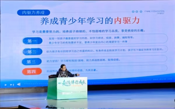 胶东在线3月24日讯(通讯员 周赛赛 实习编辑 黄洪娇)为助力家长深度理解青少年成长规律,树立科学的家庭教育理念,掌握高效的教育方法,为孩子的健康成长营造优质的家庭环境,3月22日上午,黄渤海新区教育体育局、文明办、妇联在青少年宫剧院联合举办“一起陪伴你成长”主题讲座,区内48所中小学的500名家长汇聚一堂,共同学习科学的家庭教育方法,一同探寻促进孩子成长与育人的途径。