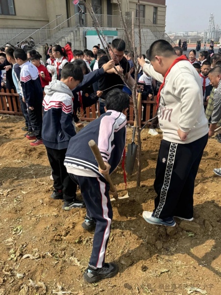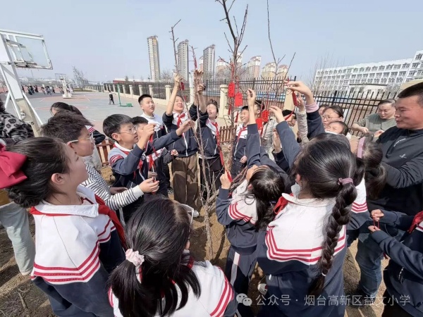 同学们参与植树活动,在校园里栽下一棵棵新苗。这些绿意盎然的小树,凝聚着家校共育的温情,也见证着孩子们成长的点滴足迹。益文学子如小树一般向阳而立、茁壮成长,在风雨中磨砺坚强,在阳光下追逐梦想。