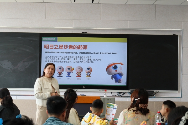 胶东在线4月3日讯(通讯员 段文星 实习编辑 黄洪娇)春和景明,暖意融融。为深化家校社协同育人理念,搭建亲子沟通新桥梁,解锁孩子成长潜能,近日,烟台经济技术开发区谦益小学举行“谦润共读?益启书香”第四期亲子活动——“明日之星”亲子沙盘推演活动。12组亲子家庭齐聚现场,特邀教育专家郭云丽专业引领,开启了一场沉浸式成长体验。