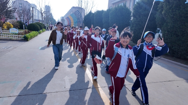 为保障活动顺利开展,学校提前精心规划路线、细化安全预案,班主任通过多渠道向家长同步活动安排,唤醒家校携手的共识。出发仪式上,大队辅导员王琳老师为全体师生与家长加油鼓劲,既鼓励孩子们在徒步中突破自我,也向家长们的支持致以谢意,让家校同心的温暖贯穿全程。